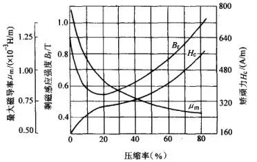 冷加工造成纯铁内部多种晶体缺陷(位错、层错等),并引起内应力,增加磁畴壁运动的难度,使He增大,μm值降低(见图11)。