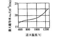 ▲图19 w(ni)45%的铁镍合金的磁导率与退火温度的关系