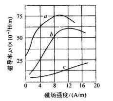 恒磁合金则进行横向磁场退火,使磁场方向与应用时的磁化方向垂直。这时合金的μ值和Br值下降(图24 中曲线c在曲线b之下),磁滞回线呈扁平状,μ值在一定磁场强度范围内变化不大。必须提出的是,磁场退火前、高温退火后的合金应处于无序状态,以保证随后在磁场的作用下形成磁织构。否则,由于有序状态下结构稳定而使磁场火的效果降低。另外,合金的居里点对磁场退火的效果有影响。居里点低时,因磁场退火的温度较低,形成磁织构所必需的原子扩散较为困难,磁场热处理的效果较小。对于依靠磁场热处理产生磁各向异性的合金,居里点越高效果越大。图26表明合金的最大磁导率与居里点的对应关系。