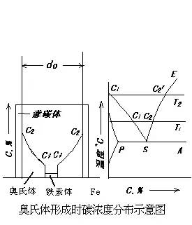 (3)低温区转变——马氏体转变,MS→Mf之间一个温度范围内连续冷却完成的,离于非扩散型转变。