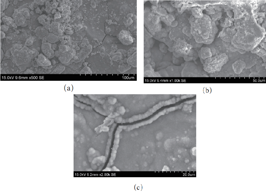 利用液压钳将试样沿裂纹撕开,采用日立S-3400热场发射扫描电子显微镜对试样开裂面进行扫描观察,并利用EDAX能谱仪进行能谱分析。