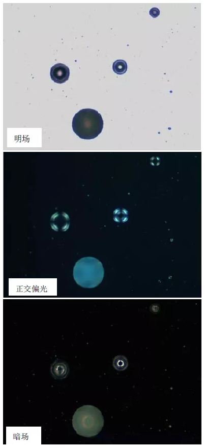 分析时发现试样中存在很多单个球状不同类型的夹杂物。图中所示就是其中一个夹杂物在不同照明方式下通过显微镜观察到的形貌。作为材料中有害物的杂质相,非金属夹杂物就像人体中的“癌细胞”一样会破坏正常的机体组织,割裂金属基体的连续性,恶化材料的力学性能,显著降低零件的使用寿命。所以在显微组织鉴别中,对非金属夹杂物的评定也是一项很重要的内容。