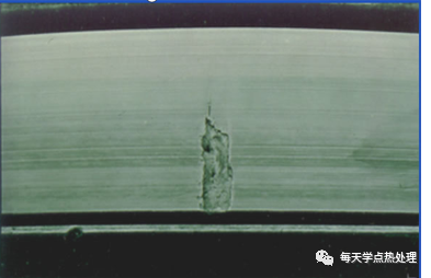 在出现蚀损斑后如未及时发现,它会沿循环方向呈V型扩展,越来越大,导致轴承失效