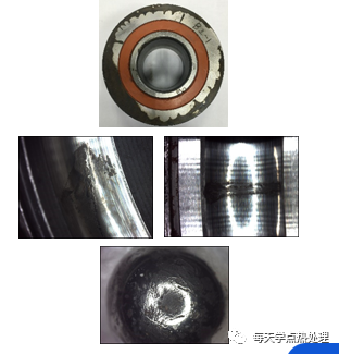 由于滚珠的几何变形和弹性变形,在剧烈变化的荷载下润滑油膜破裂,造成金属与金属的摩擦(球与滚道),引起接触表面由于粘连作用而发生破裂,也就是蚀损斑。