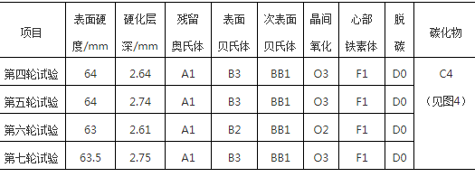 (2)渗碳过程中的参数主要影响硬化层深度方面的控制,而表层弥散碳化物的获得则主要靠二次加热淬火过程的控制。