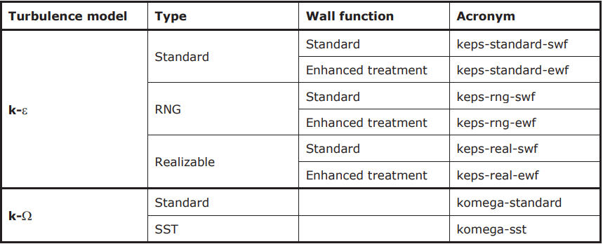 在塞棒和和水口之间的压降和钢水的流动对钢水流通量有重要的影响,由于塞棒和水口之间的间隙中的钢水加速造成剧烈的紊流。因此,研究了不同的两方程湍流模型(k-ε和k-Ω:)对湍流特性的影响。表18显示了考虑的湍流模型及其缩写。