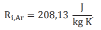公式里有气体密度ρ,静压p,温度T,单个和通用气体常数Ri, R和分子重量M,对于氩气单个气体阐述由下式给定: