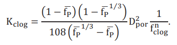 对堵塞材料的解剖分析表明,堵塞区域是由多孔网络构成的分支结构,并非均匀布置,存在一些直径为Dpor的大孔。用以下参数描述堵塞:氧化铝颗粒直径dp、堵塞的平均固体体积分数和多孔网络中开孔直径dpp,堵塞物的渗透性是由公式7计算: