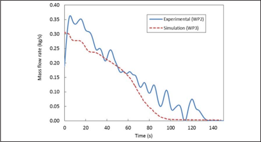 图102 在WP2堵塞计量试验台试验浇铸(WP3)与模拟浇注速率比较(UNILEOB-SMMP, COMDIC)