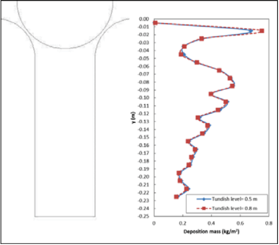 图113 两个中间包钢水液面高度夹杂物颗粒沉积质量(UNILEOB-SMMP)