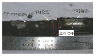 某开裂304不锈钢管为自来水进水管,管内水温为常温,在室外大气环境下使用,管径ϕ20mm,壁厚3mm,管采用非熔化极惰性气体保护(TIG)焊进行焊接,为找到该不锈钢管焊接接头的开裂原因,来自中车株洲电力机车有限公司的曹龙韬、龚兰芳和陈智江三位研究人员从化学成分、断口形貌和显微组织等方面进行了分析,并提出了具有针对性的改进措施,以期为相关从业人员提供帮助。