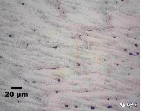 Al-1%Si 铸造合金样品,在初生α铝基体中可见硅粒子。