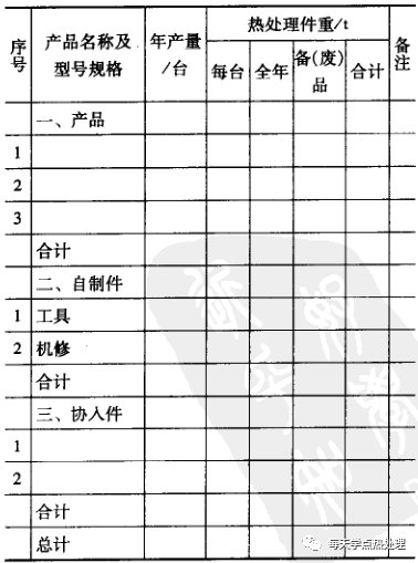 生产纲领是指车间承担的热处理件的年生产量,是根据项目产品产量以及单台