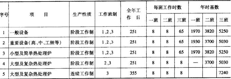 合理的设备负荷率一般规定为,三班制为75%~80%, 二班制为80%~90%。由于我国热处理设备的可靠性普遍提高,为充分利用设备,设备负荷率可提高到80%以上。