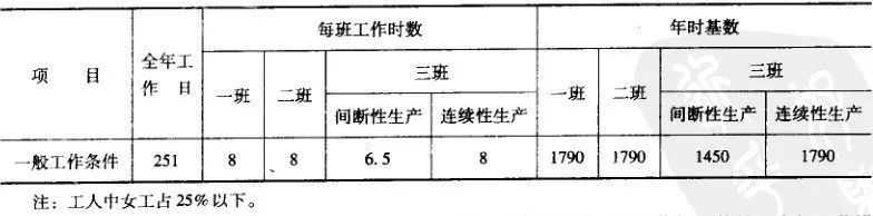 设备设计年时基数为设备在全年内的总工时数,等于在全年工作日内应工作的时数减去各种时间损失,见表2。