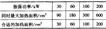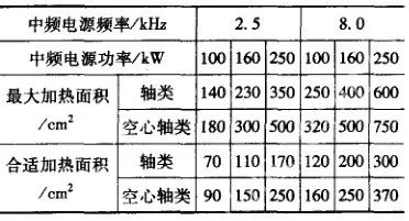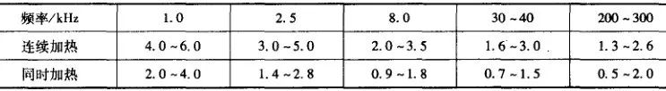 根据表7 所列数据,对某些功率的感应加热设备可同时加热的面积如表9和表10所示。