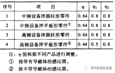 η-设备效率,η=η1×η2 (η1为感应器效率,η2淬火变压器效率)