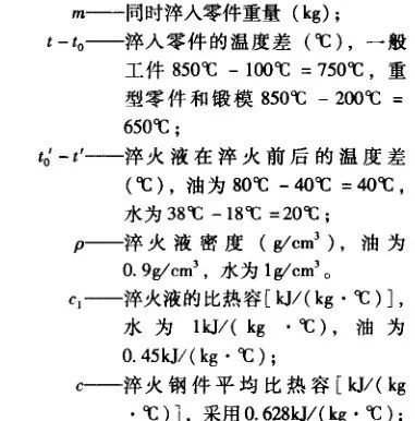 实际为便于制造和操作方便,一般淬火水槽与淬火油槽尺寸相同。以上计算的容积还需考虑淬火液温度升高的体积膨胀及淬火工件的体积。