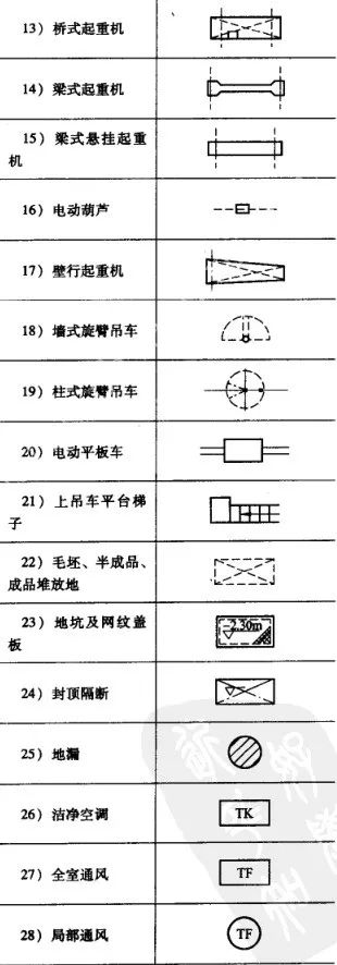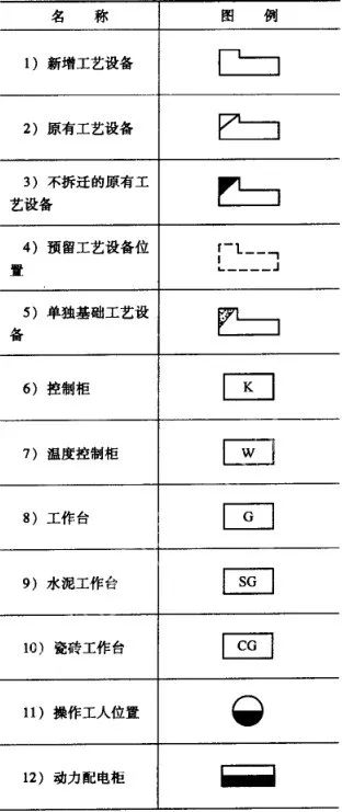 车间平面布置图中所用的图样、图例可参考表17所示样式。