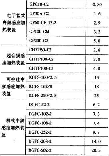 通常涉及所指单位功率为额定功率,表7 为单位功率的检验数值。常用感应淬火设备的效率见表8。