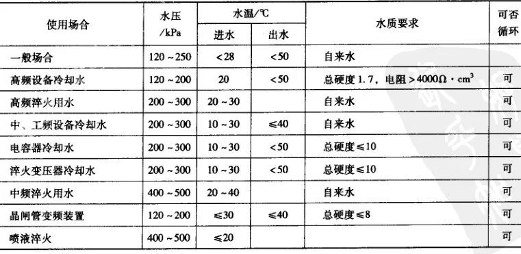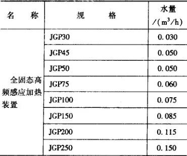 (1) 感应加热设备冷却用水量。按设备产品样本的规定,其耗水量如表30所示。