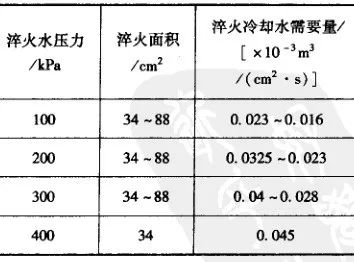 (2) 感应淬火用水量。感应淬火用水的常用压力为200~300kPa, 单位淬火面积单位时间所需淬火冷却水量指标如表 31所示。