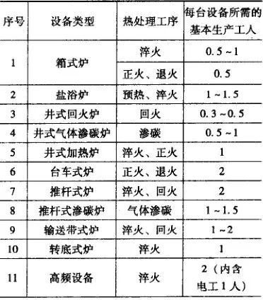 (1) 生产工人是指直接从事热处理工艺及设备操作的工人。(2) 辅助工人是指生产工人以外,直接为热处理生产服务的工人,如热处理件准备工、电工、钳工、仪表工、起重运输工等。(5) 服务人员是指服务于生产和职工生活福利的人员,如清洁工等。