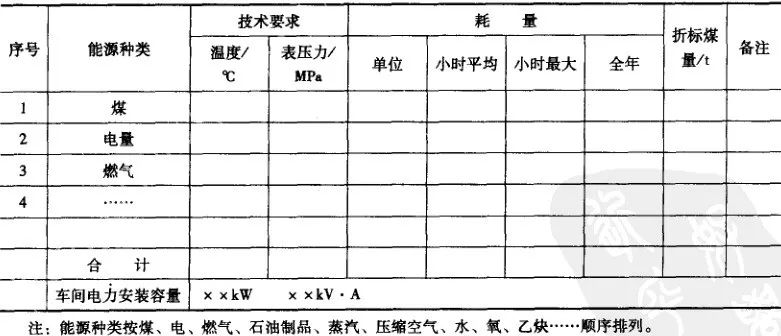 热处理车间所需各种能源的消耗量列入能耗量表,见表 34。