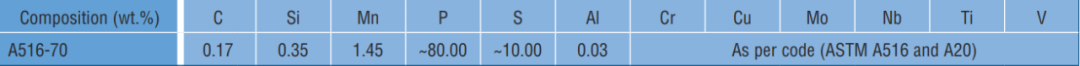 表2 A516-70钢种的化学成分,P和S值(ppm)表示