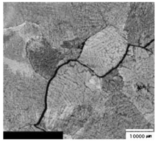 图10为PosMC生产的压力容器厚板板坯表面晶粒尺寸测量结果。在PosMC和常规拉速下,平均晶粒尺寸分别为5000微米和600微米。粗大的奥氏体晶粒增加了贝氏体和马氏体的相变倾向。结果表明,铸坯与冷却辊接触时,铸坯表面温度降至430℃。这一温度下降足以引起贝氏体相变,是铸造过程中引起裂纹的主要应力。