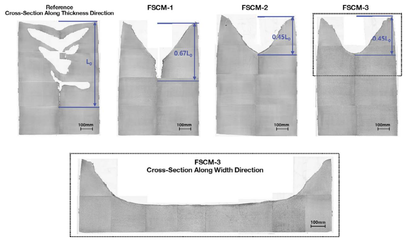 3.为解决尾坯顶部缩孔问题,开发了面向PosMC铸造的FSCM工艺,采用FSCM后,铸坯尾坯内部缩孔长度从L明显缩短到0.45L。
