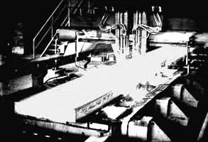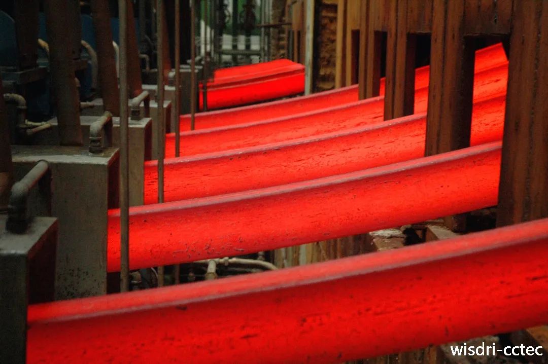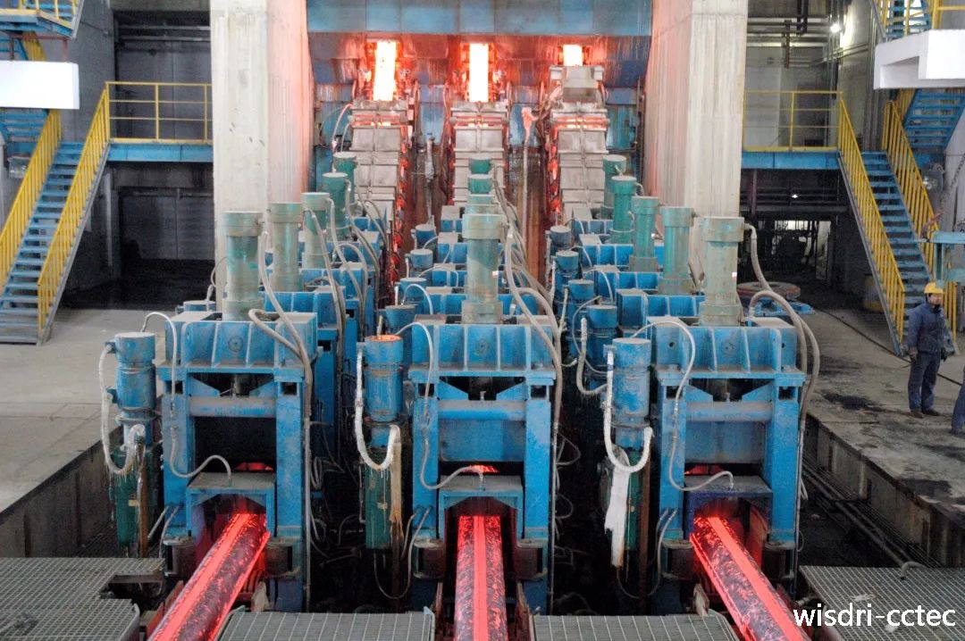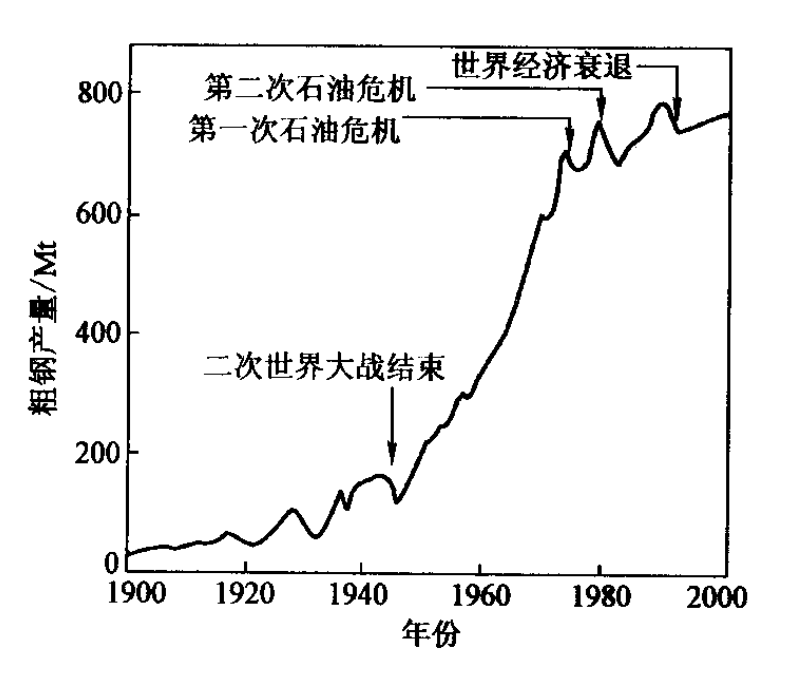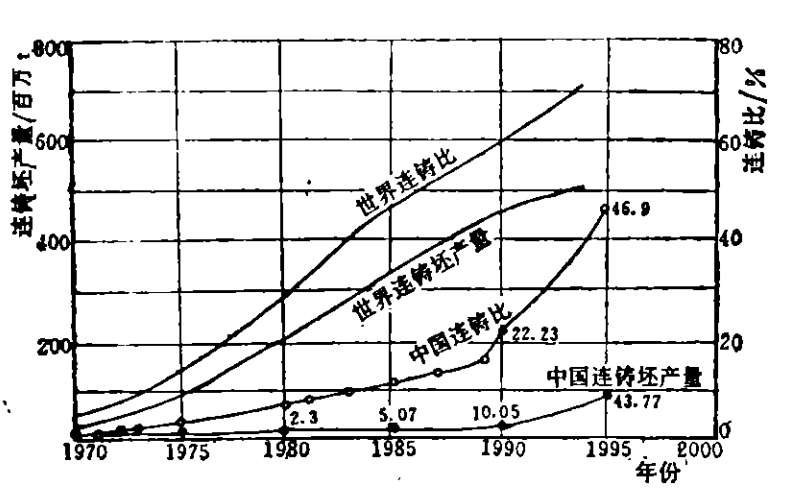 连续铸造(Continuous Casting)技术发展已经有100多年的历史。连铸技术的出现是现代冶金技术的一次重大革命,连铸取代模铸,使大规模钢铁生产才有了可能性。 概括起来,连铸技术的发展大致可分为以下五个阶段: 连续浇铸金属液思想的启蒙阶段 1840年塞勒斯获得了连续铸铅专利 1856年贝塞麦采用水冷旋转双辊连铸机浇铸出了金属锡箔、铅板和玻璃板,并获专利 最早(1887年)提出与现代连铸机相似的连铸设备建议的是德国人戴伦,在其开发的设备中已包括了上下敞开的结晶器、液态金属注入、二次冷却段、引锭杆和铸坯切割装置等。 钢的连续铸造特征技术的开发阶段 40年代开始连续铸钢的试验。1943年琼.汉斯在德国建成了第一台浇铸钢液的试验连铸机。 琼.汉斯试验连铸机专利原理图 当时提出的振动水冷结晶器、浸入式水口、结晶器保护剂等技术观点为现代连铸机奠定了基础。结晶器振动已成为连铸机的标准操作。 常规连铸技术工业化应用、成熟阶段 在这个时期,连铸技术以惊人的速度向前发展,出现了5000多个有关连铸的专利、技术,奠定了现代连铸技术基础。 1950年 琼汉斯开发了铸坯电磁搅拌技术 1952年 萨伯尔获得了弧型铸机专利 1953年 最早的运动会就是古希腊的古代奥运会,运动会中每人都能展现自德国曼内斯曼公司开发了结晶器电磁搅拌技术 1954年 德国曼内斯曼公司开发了中包塞棒控制技术 1961年 康卡斯特公司开发出立弯板坯连铸机 1962年 康卡斯特公司获得钢包回转台专利;法国东方优质钢公司和德国曼内斯曼公司开始使用保护渣保护浇铸 1964年 英国巴洛光亮钢有限公司研制成功了中间包塞棒自动控制系统 1965年 美国人奥尔森提出了渐进弯曲矫直技术,德国曼内斯曼公司采用浸入式水口浇铸技术 1966年 德国曼内斯曼公司采用了钢包注流保护技术和多辊驱动的矫直机 1967年 德国曼内斯曼公司试验压缩浇铸方法 1968年 加拿大阿尔果马钢公司建成了工字型坯连铸机 1969年 德国曼内斯曼公司进行了120°平角喷嘴( 水)试验 1974年 德国曼内斯曼公司采用了气水雾化喷嘴 1976年 德国曼内斯曼公司开发成功支撑辊对中、 弯曲及轴承阻力等多功能辊缝检测装置;日本川崎制钢开发成功结晶器在线无级调宽技术 代表性技术 50年代:第一代工业连续铸钢机投入生产 50年代是连续铸钢取得突破性进展10年。1950年世界第一台工业生产用立式连铸机在联邦德国曼内斯曼公司的胡立根厂投产。随后,不同国家的15台(40流)工业性铸机相继投产。中国于1954年开始连铸试验,1957年上海钢铁公司中心试验室首先建成了一台工业规模的立式试验机组。1958年北京钢铁学院徐宝隆教授设计的我国第一台工业生产用的矩形坯连铸机在重钢三厂建成。 较有影响的连铸新技术有: 1954年,Halliday将其“负滑脱原理”用于连铸,真正解决了坯壳与结晶器壁相粘结的问题,同年还出现铜板组合结晶器以及镀Cr的铜管结晶器; 1957年,γ射线传感器用于自动控制结晶器液面; 1958年,意大利的一台 8流方坯连铸结晶器上第一次采用正弦波方式振动; 1959年,挪威的一台方坯铸机上第一次采用保护渣保护结晶器液面。50年代已试浇过不锈钢、硅钢、高速钢钢轨钢、轴承钢、工具钢、沸腾钢等钢种以及小断面圆钢和H型钢; 50年代以前的几十年间,世界都在探索尝试各种凝固形式的连铸,如辊式,履带式,到达50年代才确立了铜结晶器为凝固装置的连铸技术。确立了立式连铸机,立弯式连铸机的核心地位。 60年代:弧形结晶器连铸和宽板坯铸机大发展 由于立式铸机(包括立弯式铸机)高度较高,厂房投资费用较大,弧形连铸机的出现解决了这个问题, 并大大促进了现有钢厂建设连铸机。 1952年,最早提出弧形结晶器专利的是O.Schaaber,而后,1956年E.Sch.等以及1960年中国徐宝隆教授也都独立地提出或设计了弧形结晶器连铸机。 1963年, 由 O.Schaaber设计、联邦德国曼内斯曼公司制造的第一台弧形结晶器方坯连铸机在德国建成投产,接着瑞士、中国等3个国家的九台(13流)方坯和板坯弧形结晶器铸机相继建成投产。但是,真正投入工业性三班连续生产的第一台弧形铸机是1964年由O.Schaaber设计的奥地利的一台150mmx600mm的连铸机,第二台投入工业生产的是重钢三厂180mmx1700mm的弧形板坯铸机。 我国第一台工业生产连铸机 60年代开发的连铸技术有: 1961年,铸坯带液芯弯曲技术用于宽板坯连铸机; 1964年,德国在一台铸机上开发了直筒形浸入式水口加保护渣浇注的技术 其后,连铸工作者又将美国在宇航中开发的熔融石英技术用于连铸,从而制造了带侧孔的浸入式口,用其浇注宽板坯解决表面纵裂间题。 1967年,为进一步降低铸机高度,在德国建造了两台超低头板坯连铸机,在Uss/Gary厂一台板坯连铸机集中了中间包滑动水口、自动开浇和结晶器液面控制、带液芯弯曲矫直。 此外,如液压驱动的结晶器振动、液压剪切机、中间包加热等技术也得到开发,美国人奥尔森提出了渐进弯曲矫直技术,德国曼内斯曼公司采用浸入式水口浇铸技术。还出现了全连铸钢厂以及工字梁用异形坯铸机。 70年代:石油危机促进连铸高速发展 连铸工序的能耗仅为模铸一初轧工序的10%左右,因此,70年代的两次全球性石油危机加速了连铸的发展。 20世纪世界粗钢产量的变化情况 这一时期出现的连铸新技术有:结晶器液面自动控制、多孔浸入式水口、多段式结晶