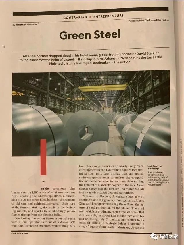 小型钢铁厂的炼钢技术出现于20世纪60年代中期,通过电弧炉溶解废钢,连续将其锻造为钢坯,然后再将钢坯轧制成钢筋、钢棒、钢梁和钢板。由于小型钢铁厂的原材料是回收来的废旧钢铁,不是矿石,因此,它的生产流程比较短,又被称为短流程钢铁厂。而那些通过用铁矿石、煤炭和石灰石最终转化为钢铁制品的钢厂即为综合钢铁厂,也被称之为长流程钢铁厂。 从规模上看,小型钢铁厂的生产规模不及综合型钢铁厂的十分之一,但是,小型钢铁厂是最具效率和成本最低的。1995年,最高效的小型钢铁厂,每生产一吨钢铁只需0.6个工时,而最高效的综合钢铁厂则需要2.3个工时,后者约为前者3倍的工时。尽管小钢铁厂规模小、生产设备简陋,但是这让它们从一开始就具备了低于综合钢铁厂约20%的成本优势。同类产品,小型钢铁厂可以做到“人有我廉”。 初期,由于受到技术的限制,通过电弧炉将废旧钢铁熔炼后生产的钢铁产品质量不高,只是被做成钢筋(螺纹钢)使用。对于综合钢铁厂而言,钢筋这个产品的毛利率一直徘徊在7%左右,钢筋这个品类在钢铁行业中的占比并不大,也只有4%。毛利不高,市场也很小,钢筋被认为是最没有投资价值的品类。 已经习惯了吃香喝辣的综合钢铁厂,看不上钢筋这种低毛利小市场的业务,它们开始华丽转身而去开发利润更高市场更大的产品。是呀,有了肉吃,谁还愿意去啃骨头呀,到了1979年,综合钢铁厂开始退出了钢筋市场。 一开始,小型钢铁厂在钢筋这个市场上享有很高的利润。但是好景不长,小型钢铁厂之间开始大打价格战,使得钢筋的价格出现暴跌,小型高铁厂只能维持生存。 综合钢铁厂在角钢、钢条和钢棒等高端产品市场上获得了丰厚的利润,毛利是12%,大约占市场规模的8%。对于小型钢铁厂来说,这是一个极具诱惑力的市场。于是,如同当年进攻钢筋市场一样,小型钢铁厂发起了向角钢、钢条、钢棒这个市场的冲击。 当小型钢铁厂能够生产角钢、钢条、钢棒产品之后,综合钢铁厂的表现和上次面对钢筋市场时的态度一样,它们无心恋战,轻易就把市场拱手让给了小型钢铁厂。 之前发生过的故事又一次重新上演,到了1984年,综合钢铁厂退出市场后,小型钢铁厂开始了价格战,角钢、钢条、钢棒的利润一次一次被拉低。 路在何方? 毫无疑问,综合钢铁厂继续向更加高端的结构钢市场迈进。这一块市场的毛利是18%,市场容量是角钢、钢条、钢棒市场的三倍,实在是太丰厚了。 当时,行业内的专家们认为,结构钢主要用于建筑和桥梁结构,对于规格质量的要求是很高的,只有综合钢铁厂的轧钢设备才能生产出结构钢,小型钢铁厂根本没有实力去投资这种轧钢设备的。 然而,这些专家们万万没有想到的是,为了求得生存,小型钢铁厂再度显示出不畏艰难勇于拼搏的胆量,这也印证了“胆大人艺高”那句话,在从角钢转向结构钢的过程中,小钢铁厂取得了技术上突破,开始进入了结构钢的市场。 进入结构钢市场的初期,小型钢铁厂只能轧出低端的结构钢。综合钢铁厂如同之前的态度一样,采取的措施依旧是关闭结构钢生产线,退出这个市场,投资于利润更高的钢板产品。纽柯钢铁(Nucor)是一家从1972年才开始通过回收废旧钢铁炼钢的小型钢铁厂,在螺纹钢市场站稳脚跟后,便开始冲击更大的市场。纽柯在阿肯色州建立了生产结构钢的工厂。到了上个世纪90年代中期,小型钢铁厂把最后一个综合钢铁厂逐出市场。 难以令人相信的是,这种循环又一次重演了,纽柯成功地进军钢板市场,它的市值已经超过了美国最大的综合钢铁厂——美国钢铁公司(US Steel)。美国钢铁厂成立于1901年,由卡内基钢铁公司和联合钢铁公司等十几家企业合并而成,曾经控制着美国钢产量的65%。 2019年5月19日,我看到一则消息,位于美国宾夕法尼亚州的伯利恒钢铁公司前总部大楼被爆破拆除。伯利恒钢铁公司曾经是美国第二大钢铁生产公司,于2001年宣布破产,2003年倒闭。 这是一座21层高的大楼,曾经是当地的最高建筑,有着四十七年历史。 我是在网上观看了这段16秒长的爆破拆除视频,那一幕真的让人心碎。 令人遗憾的是,半个世纪以来,这已经成为了一种“魔咒”,至今,没有一家综合钢铁公司能够穿越。 颠覆式创新: 让大河钢铁成为“钢铁界的特斯拉” 一座巨大的蓝色厂房,坐落在毗邻密西西比河的大豆田(占地1100英亩)上,一排排的每个重约300吨装满废钢铁的容器(旧汽车和冰箱的钢制残骸)在电炉旁等候着。汽笛声刺耳,震耳欲聋的隆隆声响起,耀眼的火花从闪闪发光的钢包中升起。 BRS大河特种钢铁厂回顾四周,一间中央控制室里坐着一位操作员,他的前面是十几台LCD显示屏,这些显示屏上显示的图形都来自于这座17.6万平方米的轧钢厂,来自每台设备上的数千个传感器所传输的数据。一台显示屏使用光发射光谱仪实时分析钢水中的成分,确定混合物中铜等合金的含量。红色数据显示这座不超过6米的熔炉室温度处于2,951华氏度。 这家小型钢铁厂每天生产4500吨热轧钢,即每年的产量约为165万吨。 “我们是一家科技公司,只不过是进入了钢铁界而已。”大卫·斯蒂克勒说。 这是《福布斯》杂志记者描写的有关大河钢铁厂的场景,大卫·斯蒂克勒是大河钢铁的CEO。 大河钢铁是一家成立仅五年的初创公司,它在用人工智能颠覆钢铁行业!她创造了好多世界第一! 第一、能耗最低。即使以电炉钢厂的代表