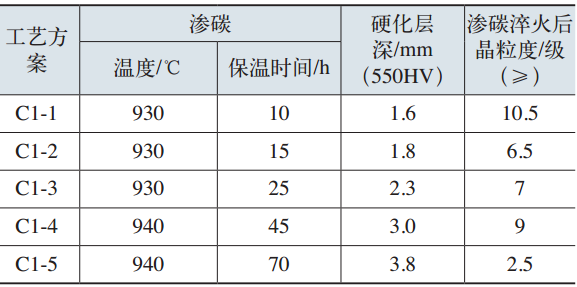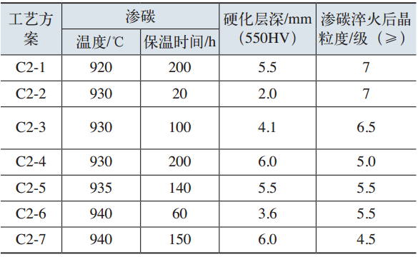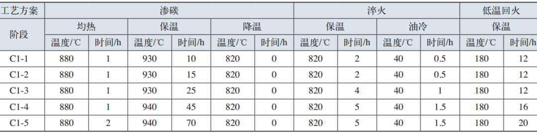 表2 5组18CrNiMo7-6钢渗碳直接淬火工艺方案