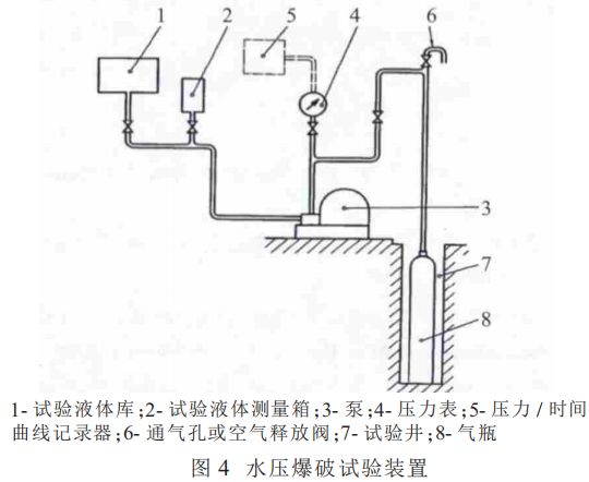 水压试验装置设置如图4所示。根据外侧法30MPa的试验数据, 同批热处理的15件34CrMo4钢瓶中,其残余变形率最大达到了16%,大大的超出设计范围,这说明在30MPa的水压试验中,瓶体已发生了部分塑性变形。结合2.3和2.4分析,大规模发生气瓶爆破与热处理加工工艺有关。