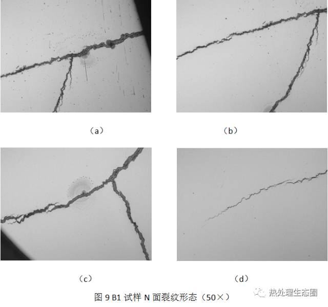 将B1试样(见图8)分别沿N面和K面进行磨抛并侵蚀(N为内孔表面,K为沿壁厚方向磨抛面),并在显微镜下依次观察裂纹形态及其附近显微组织。