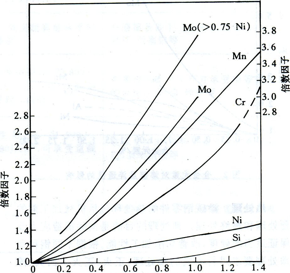 横坐标-合金元素/% 纵坐标-倍数因子表1 一些国家的渗碳钢典型钢种