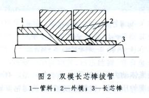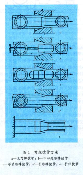 为了克服常规冷拔法的缺点,不断研究出以下一些拔管方法:(1)圆锥芯棒拔管(图3),同一般短芯棒相比拉杆力Pc小。