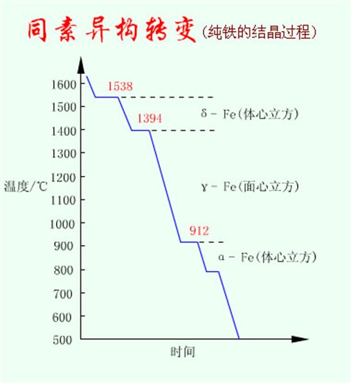 δ-Fe(体心立方晶格)----- γ -Fe(面心立方晶格)----- α - Fe(体心立方晶格)