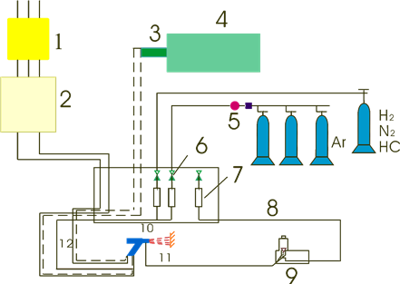 6-压力计;7-流量计;8-载粉气;9-送粉器;10-控制台;