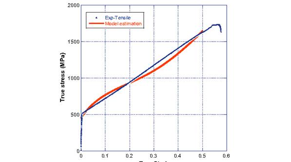 图7 TWIP钢的试验及预测的真应力-应变曲线