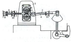 6-轧辊;7-芯棒杆;8-芯棒杆卡盘;9-管料卡盘;10-中间卡盘;11-前卡盘