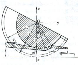 瞬时变形区的结构 无论正行程轧制或返行程轧制,瞬时变形区的出口截面都与工作机架的中心截面相重合。在二辊式冷轧管机上轧管时,由于进入变形区的管体要先减小直径再减小壁厚,因此,瞬时变形区包括由减径角θp和压下角θt构成的两部分(图3b)。在工作机架的行程中θp、θt的大小是变化的。θp与θt之和构成瞬时变形区总的接触角。在多辊式冷轧管机上轧管时,行程的开始阶段瞬时变形区由单一的减径区构成,在行程的其他部分,由于这种轧机使用圆柱形芯棒,瞬时变形区可以认为由单一的减壁区构成。