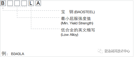 宝钢产品的牌号一部分直接使用国外标准的牌号,一部分采用自己的命名方式命名。现简要介绍宝钢自己命名的牌号的方法。