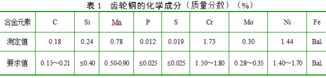 齿轮材料为渗碳钢18CrNiMo7-6(DIN 10084),其合金成分满足技术要求,结果见表1。