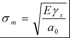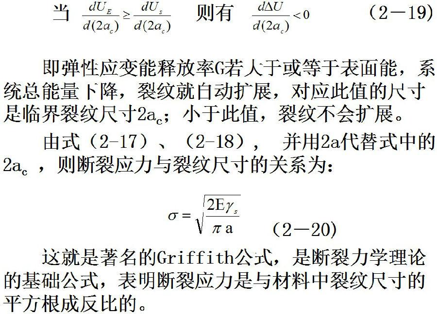 把物性常数E、γs 、 a0分别代入(2-16)中, 就可求得材料的理论断裂强度(断裂应力)。