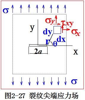 1957年,美国Irwin在Griffith理论基础上,推导出裂纹尖端附近(图2-27)的应力场: