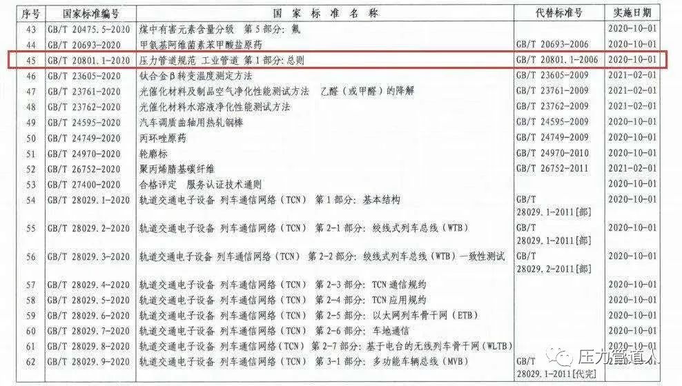 工业管道GB/T20801.1标准2020年10月1日起实施!