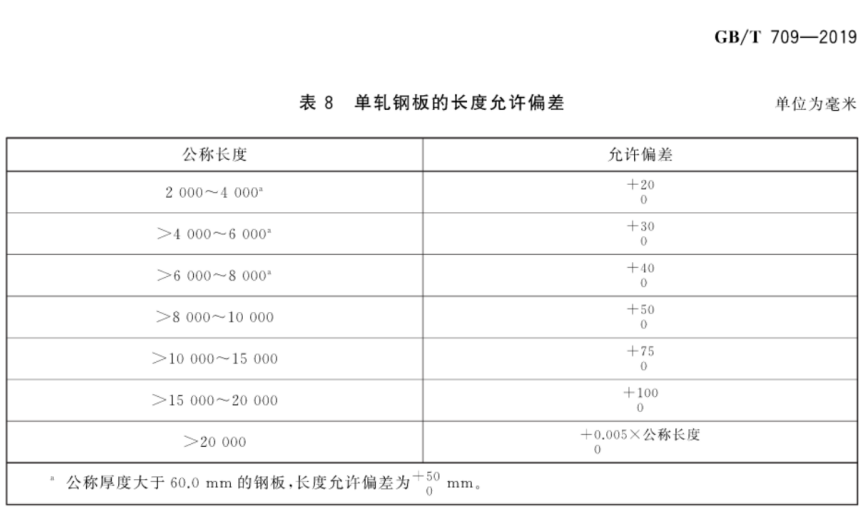 图1-- 2019版关于单轧钢板长度允许偏差规定