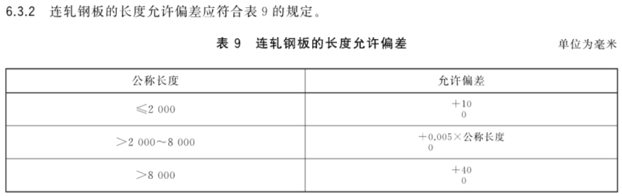 关于连轧钢板长度偏差的修订其实就一点,就是将长度小于2000mm的偏差单独规定为0~+10mm。